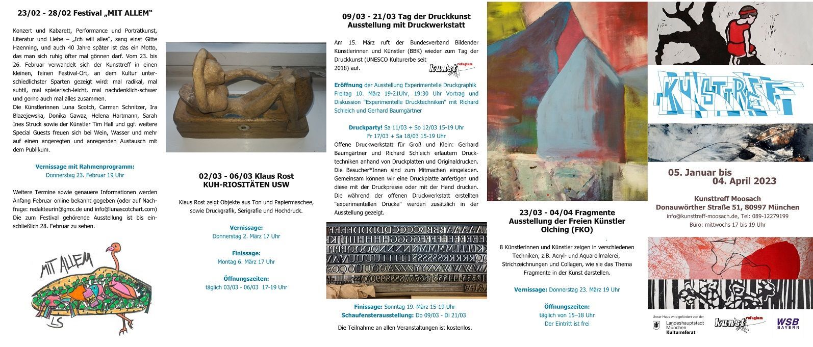 Anfang November 2023 wurde der Kunsttreff spontan zum Veranstaltungsort einer Aufführung der Schlauschule, eine Initiative, die sich für junge Geflüchtete engagiert. An diesem Abend zeigte die in der Ukraine sehr populäre Schauspielerin Vitalina Bibliv ein Ein-Personen-Theaterstück. Im Anschluss gab es noch eine Gesprächsrunde und eine Versteigerung. Alle Spenden und Einnahmen an diesem Abend gingen natürlich an die Ukraine.